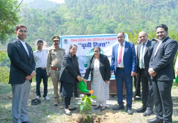 रुद्रप्रयाग: विश्व पृथ्वी दिवस के अवसर पर जिला विधिक सेवा प्राधिकरण रुद्रप्रयाग के तत्वावधान में जिला न्यायालय परिसर रुद्रप्रयाग में वृक्षारोपण कार्यक्रम का आयोजन किया गया। यह कार्यक्रम जनपद न्यायाधीश/अध्यक्ष, जिला विधिक सेवा प्राधिकरण रुद्रप्रयाग सहदेव सिंह के मार्गदर्शन एवं दिशा-निर्देशन में संपन्न हुआ। कार्यक्रम का आयोजन वन विभाग एवं उद्यान विभाग रुद्रप्रयाग के सहयोग से किया गया, जिसमें औषधीय पौधों के साथ अन्य छायादार और फलदार वृक्षों का रोपण किया गया।